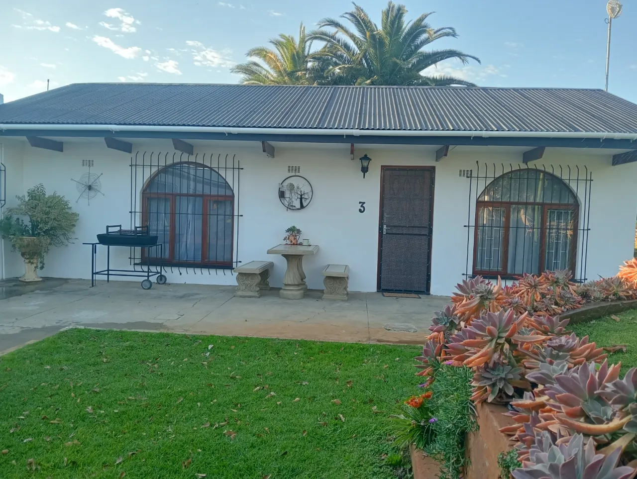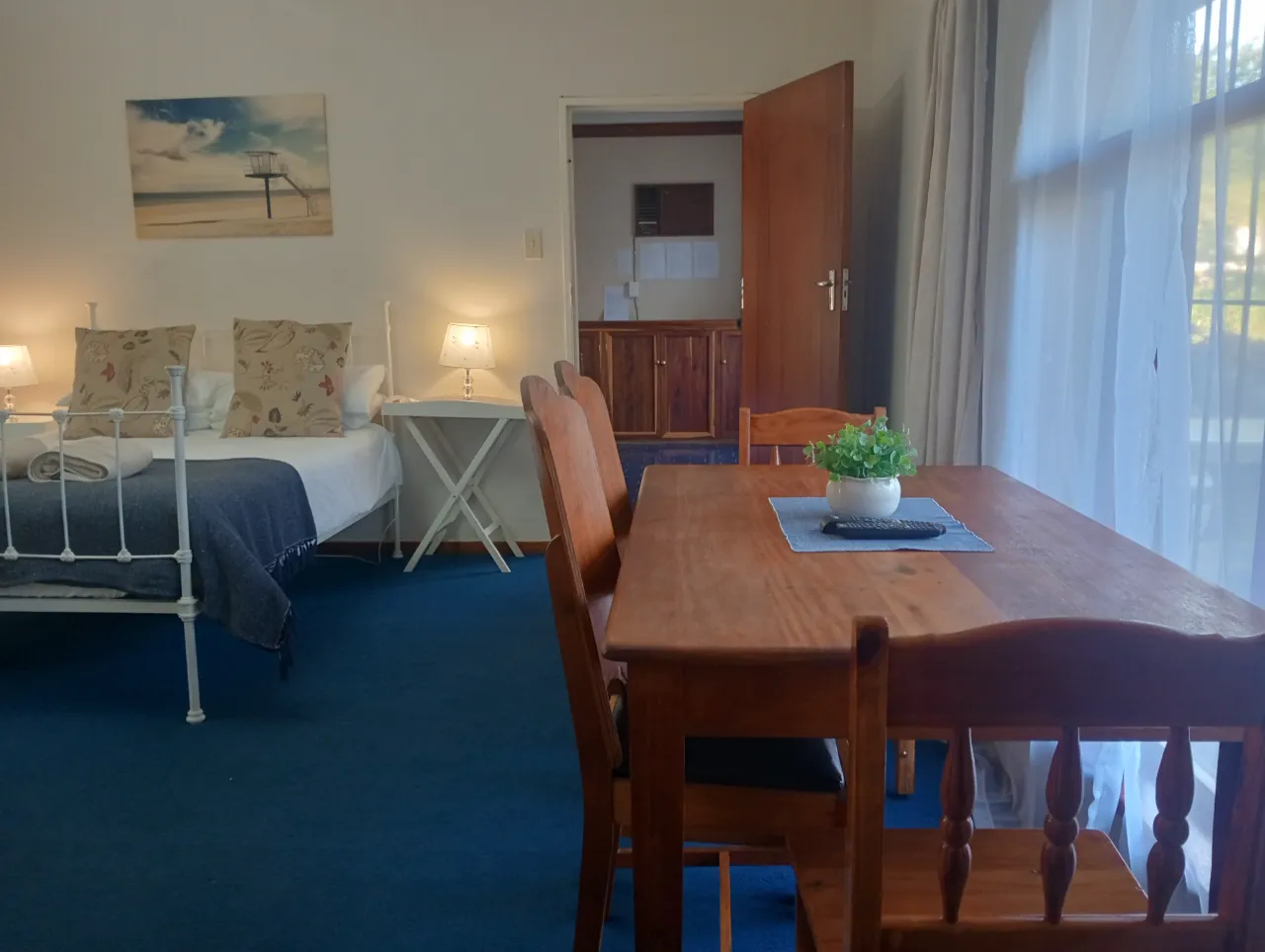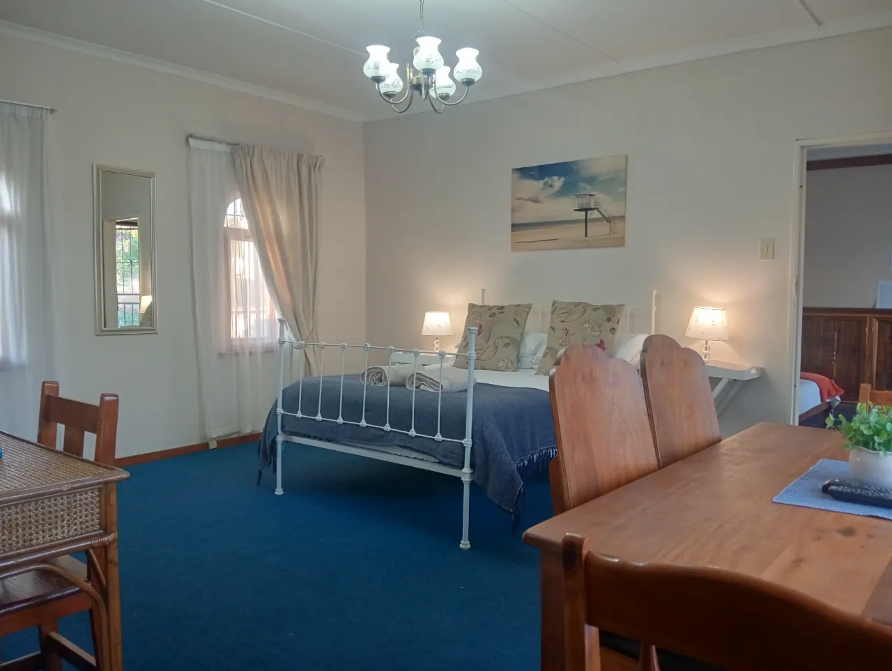 This unit has air conditioning. An outdoor seating area and freestanding braai is available for guests in front of the unit with a view of the garden.