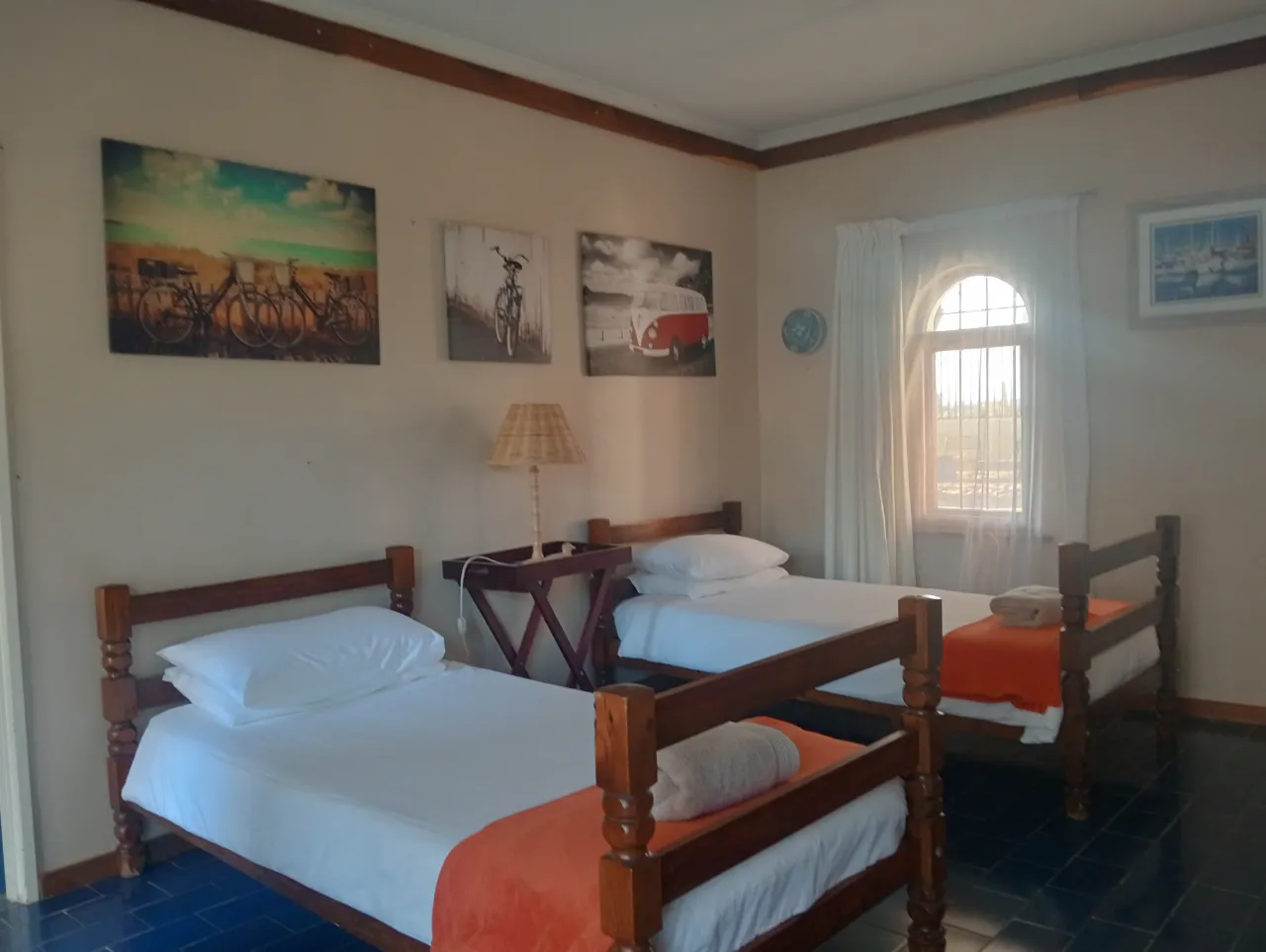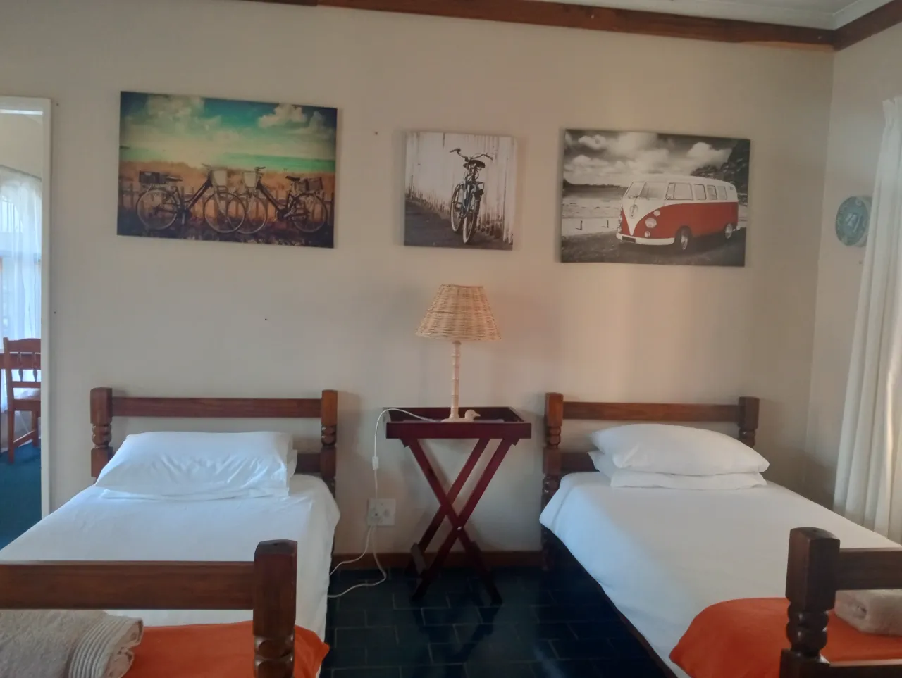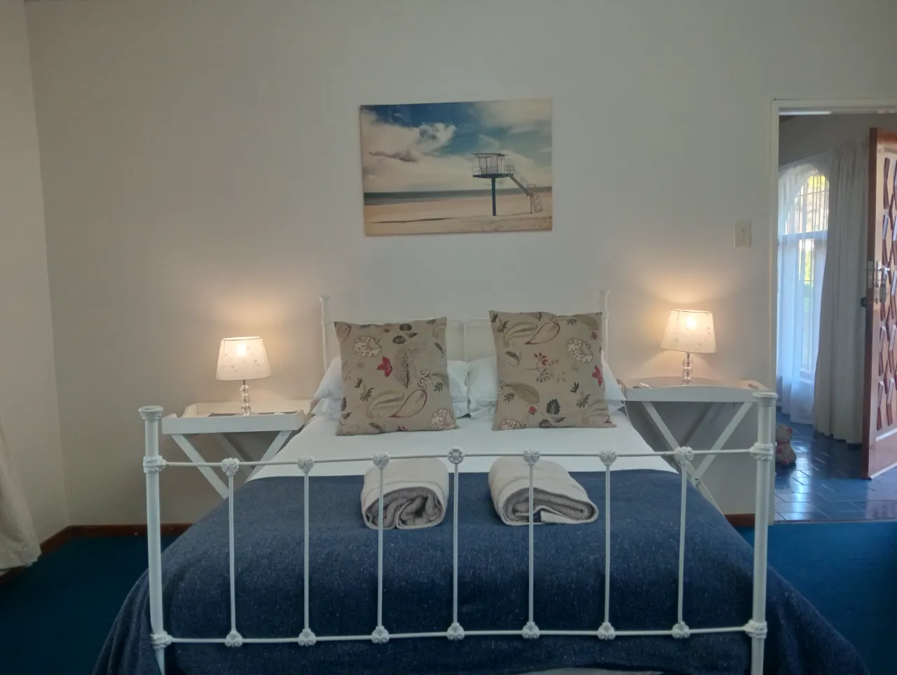 This unit has air conditioning. An outdoor seating area and freestanding braai is available for guests in front of the unit with a view of the garden.
