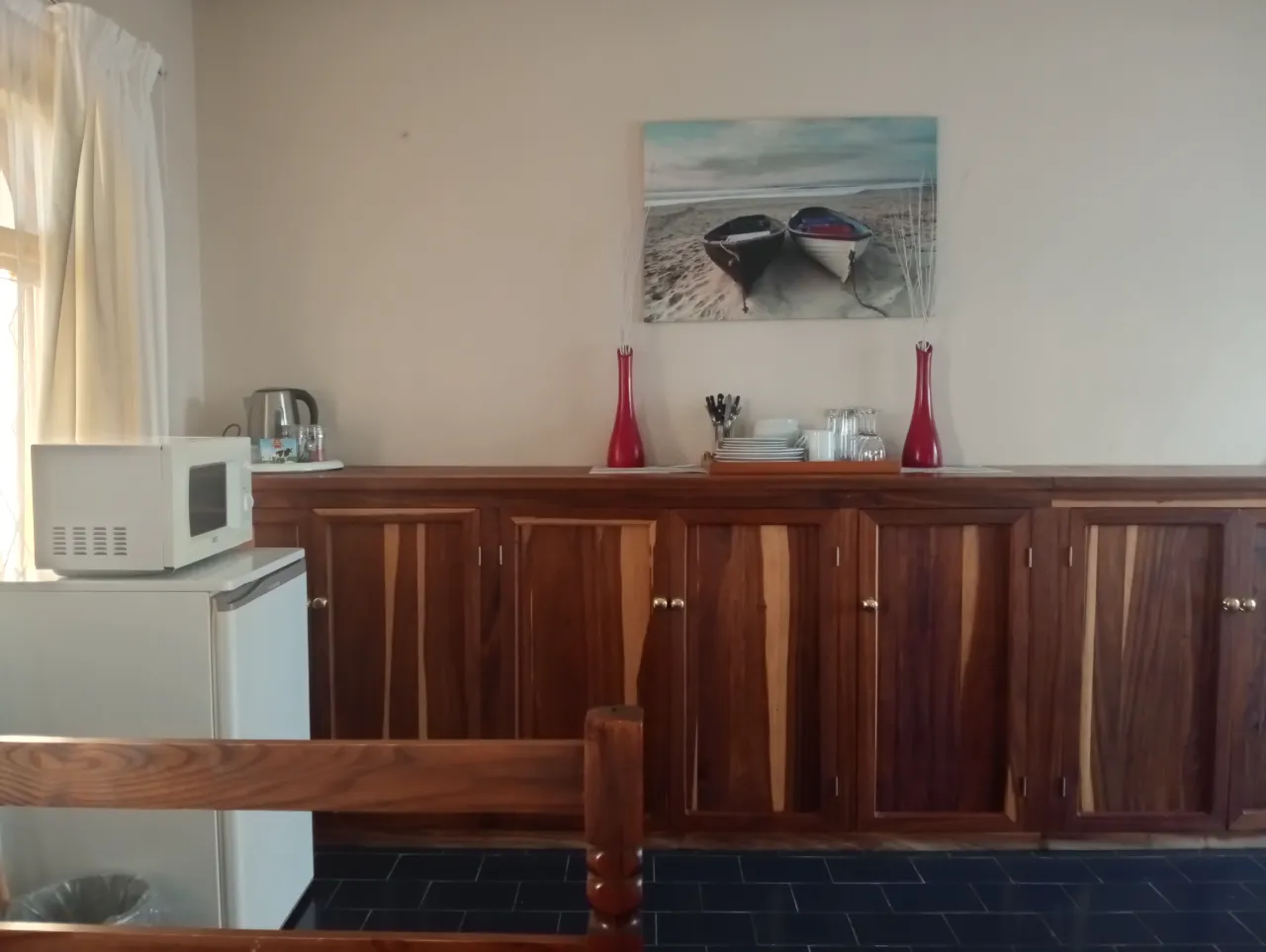 The kitchenette is only equipped with a microwave oven, bar fridge, cutlery and crockery, as well as tea-and-coffee-making facilities.